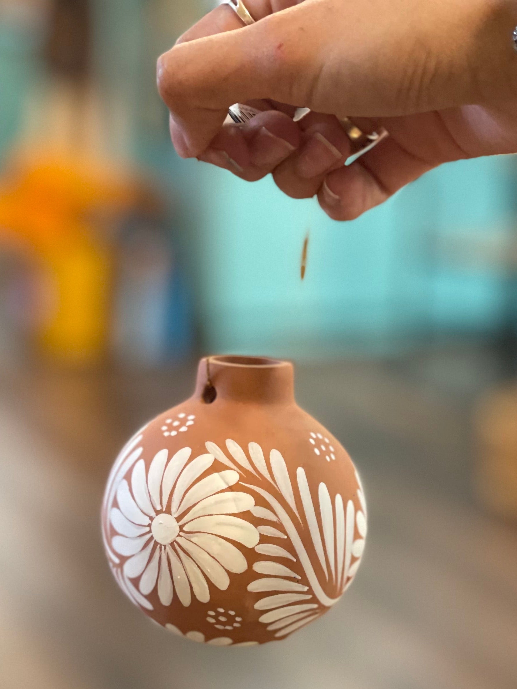 These one-of-a-kind handmade clay bulb ornaments are individually shaped and hand-painted with traditional floral designs, making each piece completely unique. Crafted in Mexico from natural clay, these ornaments add an earthy, artisan touch to any Christmas tree, wreath, or holiday display. Lightweight yet timeless, they bring warmth, culture, and handmade beauty to your seasonal decor. Actual designs will vary from the one pictured.