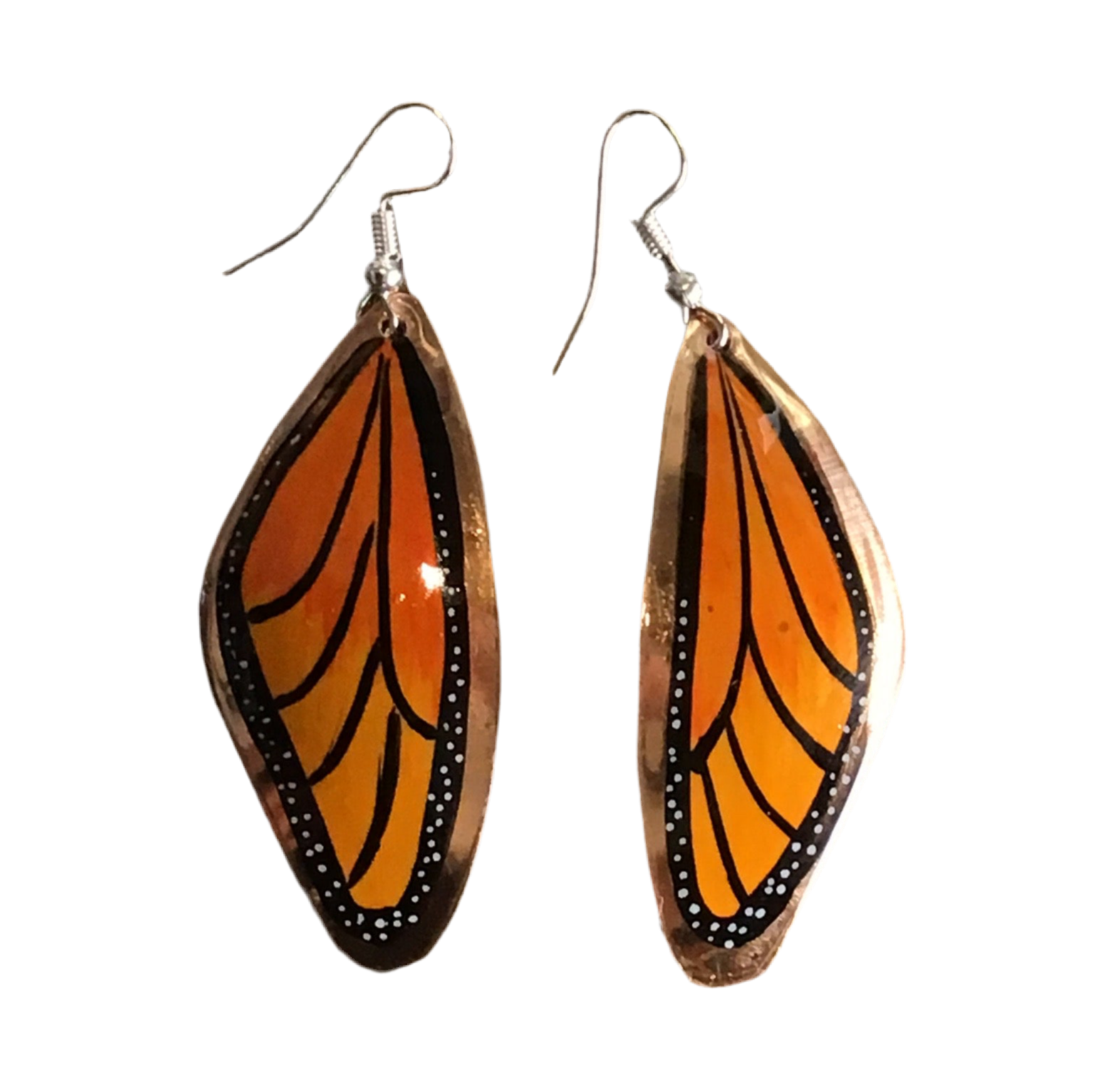 These Butterfly Wings Copper Drop Earrings are meticulously handmade and hand-painted in Michoacán, Mexico. Their delicate design captures the natural elegance of butterfly wings, bringing a unique and refined touch to your ensemble. Crafted with care, these earrings offer a sophisticated statement inspired by artisan tradition and vibrant artistry.