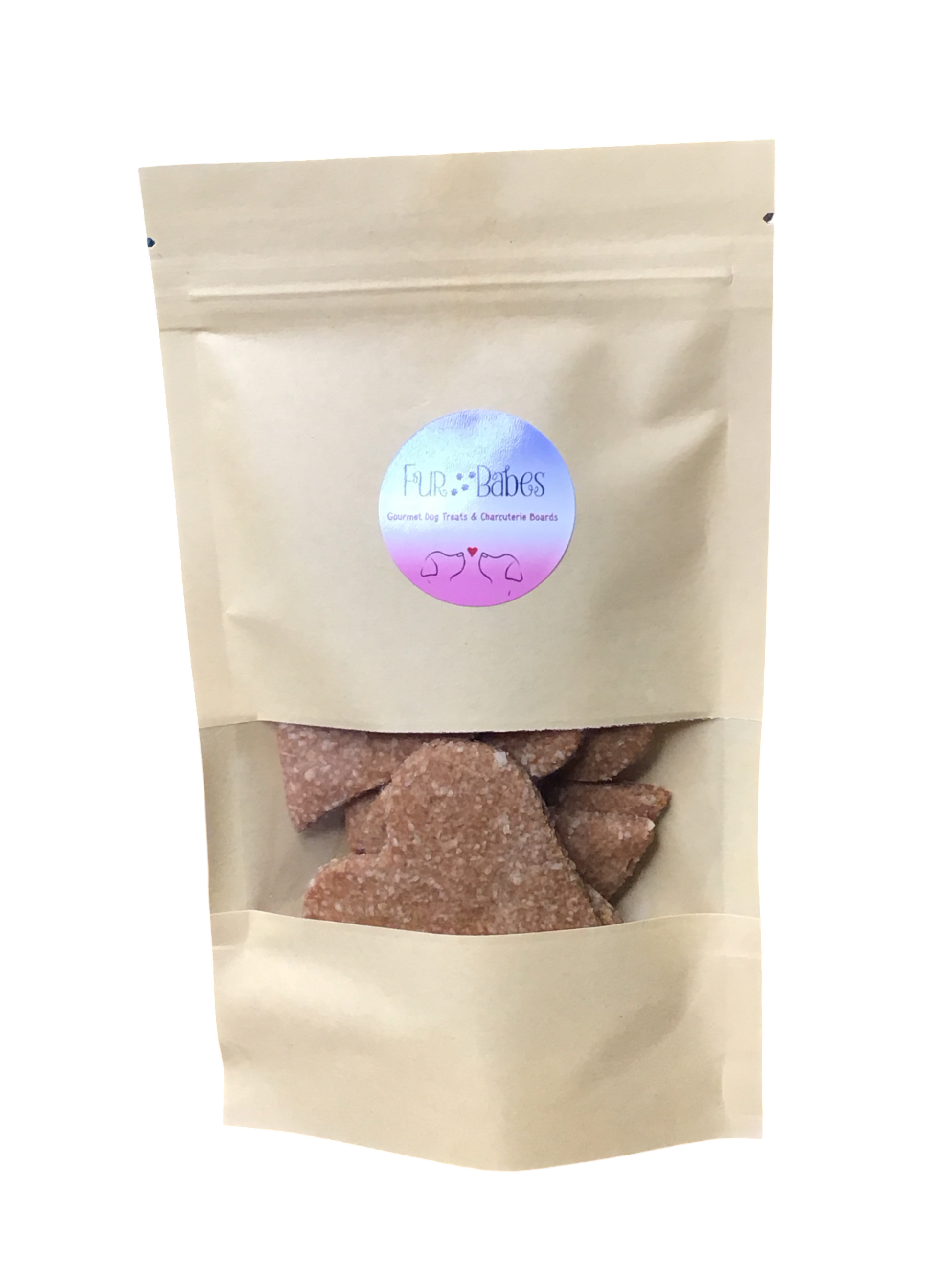 Fur Babies Banana Peanut Butter Hearts contain just three simple ingredients: rolled oats, banana, and unsweetened natural peanut butter. These handmade treats combine the flavors of banana and peanut butter for a delicious snack. Locally crafted, each heart delivers a flavorful bite that’s gentle on pups’ digestion. Available in 1oz and 2.5oz bags.
