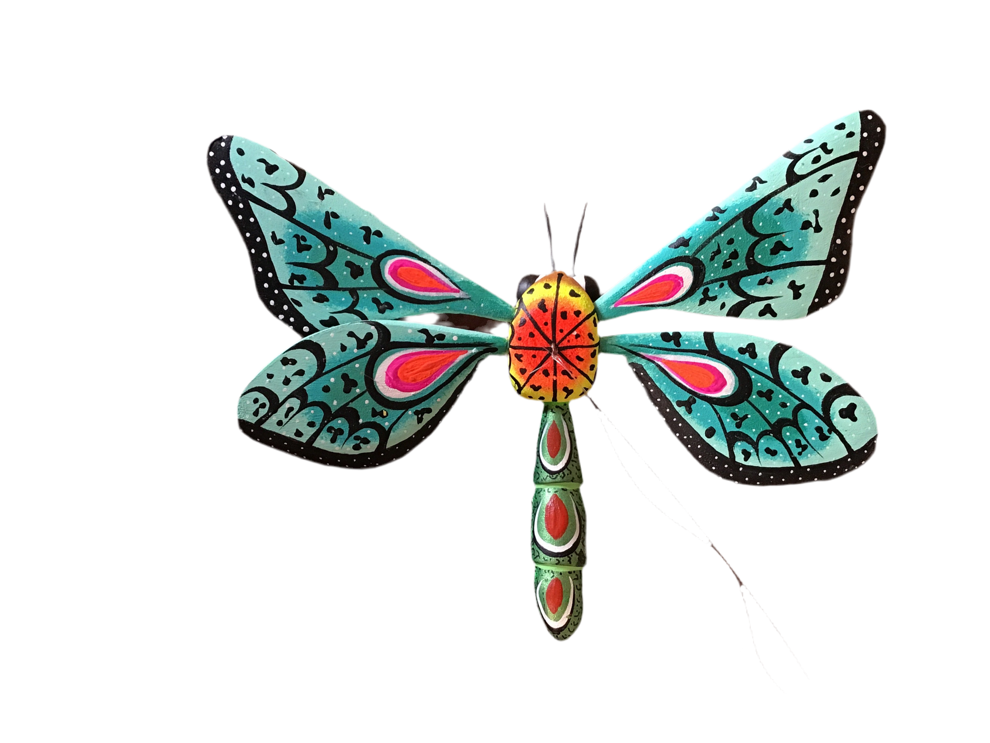 This wooden butterfly alebrije is carefully hand carved and painted by Balam Arts, reflecting their artistic expertise.